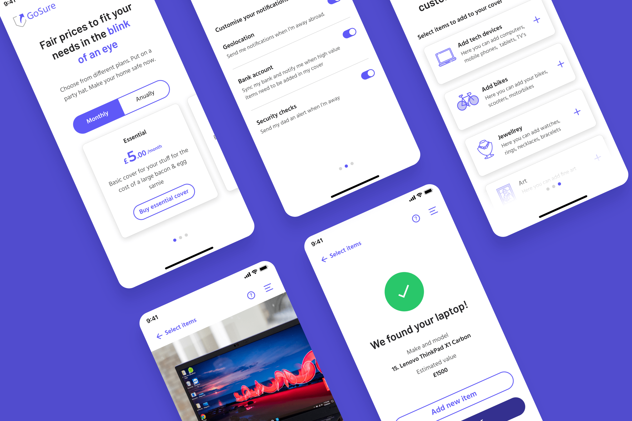 GoSure was developed as a new digital-first insurance brand, including naming, logo, tone of voice, visual language, and supporting brand guidelines.