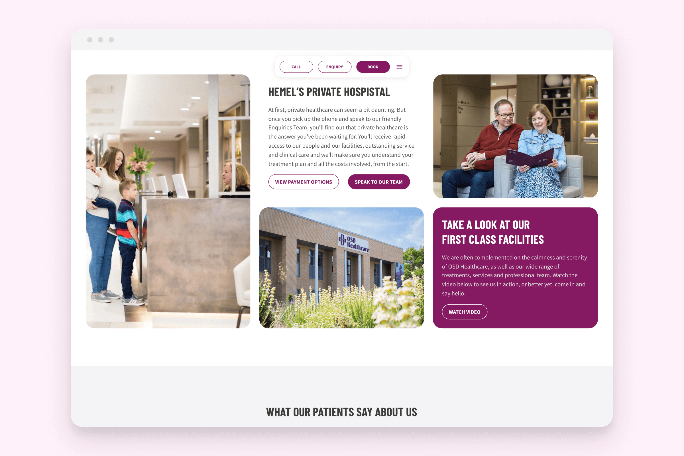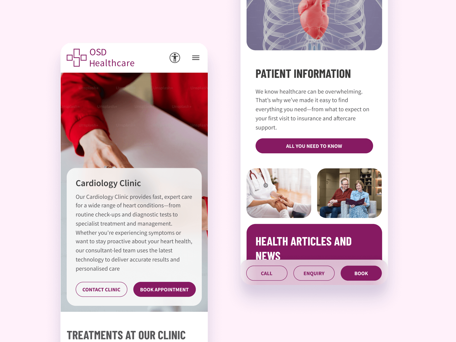 To support this, I introduced a bento-style grid layout, breaking content into clear, digestible sections. Treatments and services were structured using a mix of lists, sliders, text blocks and imagery, enabling users to scan information quickly without feeling overwhelmed. Clear hierarchy, legible typography and consistent interaction patterns ensured accessibility throughout.